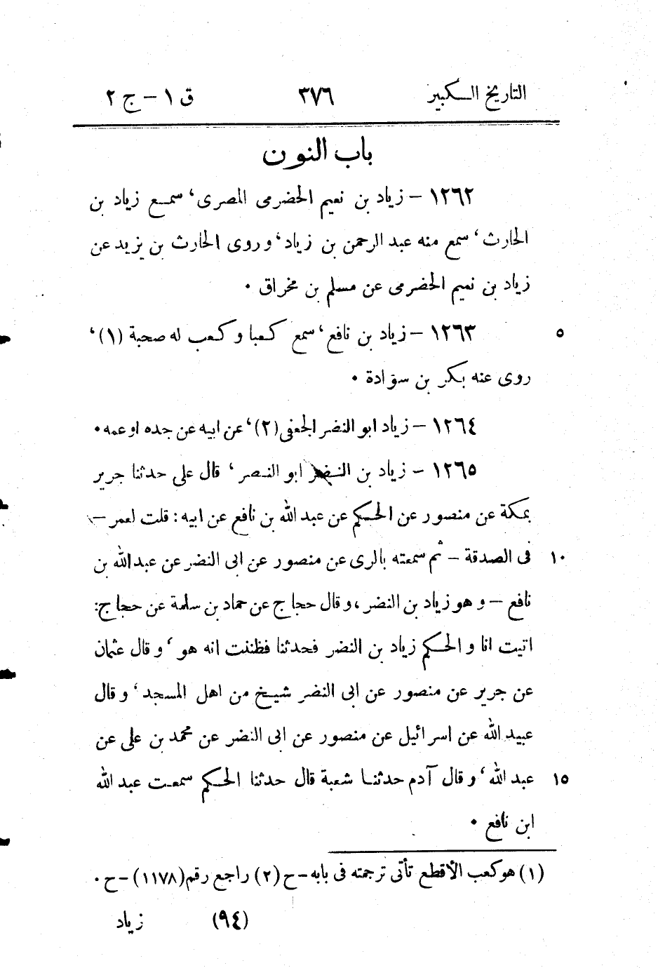 1266 - زياد بْن نصر (1) من أهل وادي القرى: حدثنا سليم بْن مطير، سَمِعَ منه عَبْد الرَّحْمَن بْن شيبة.