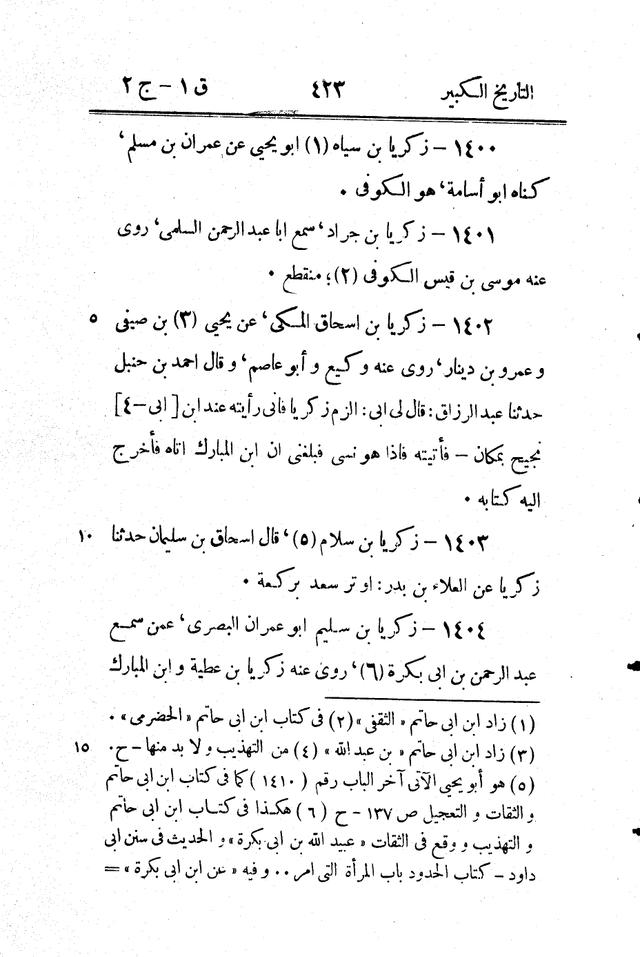1410 - زكريا بْن سلام (1) أَبُو يحيى سَمِعَ سَعِيد بْن مسروق - قاله ابْن حميد عَنْ هارون بْن المثنى.
