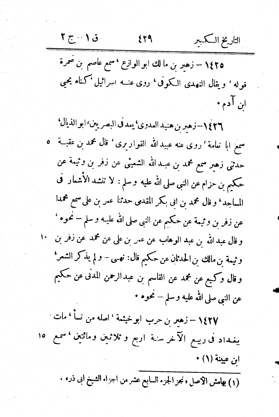 1428 - زفر بْن الحارث الكلابي الشامي الجَعْفَري، سَمِعَ عَائِشَةَ ومعاوية، روى عنهُ ثابت بْن حجاج وجحيشة (1) ، قَالَ قتيبة: هو والد مزاحم بن زفر العامري.