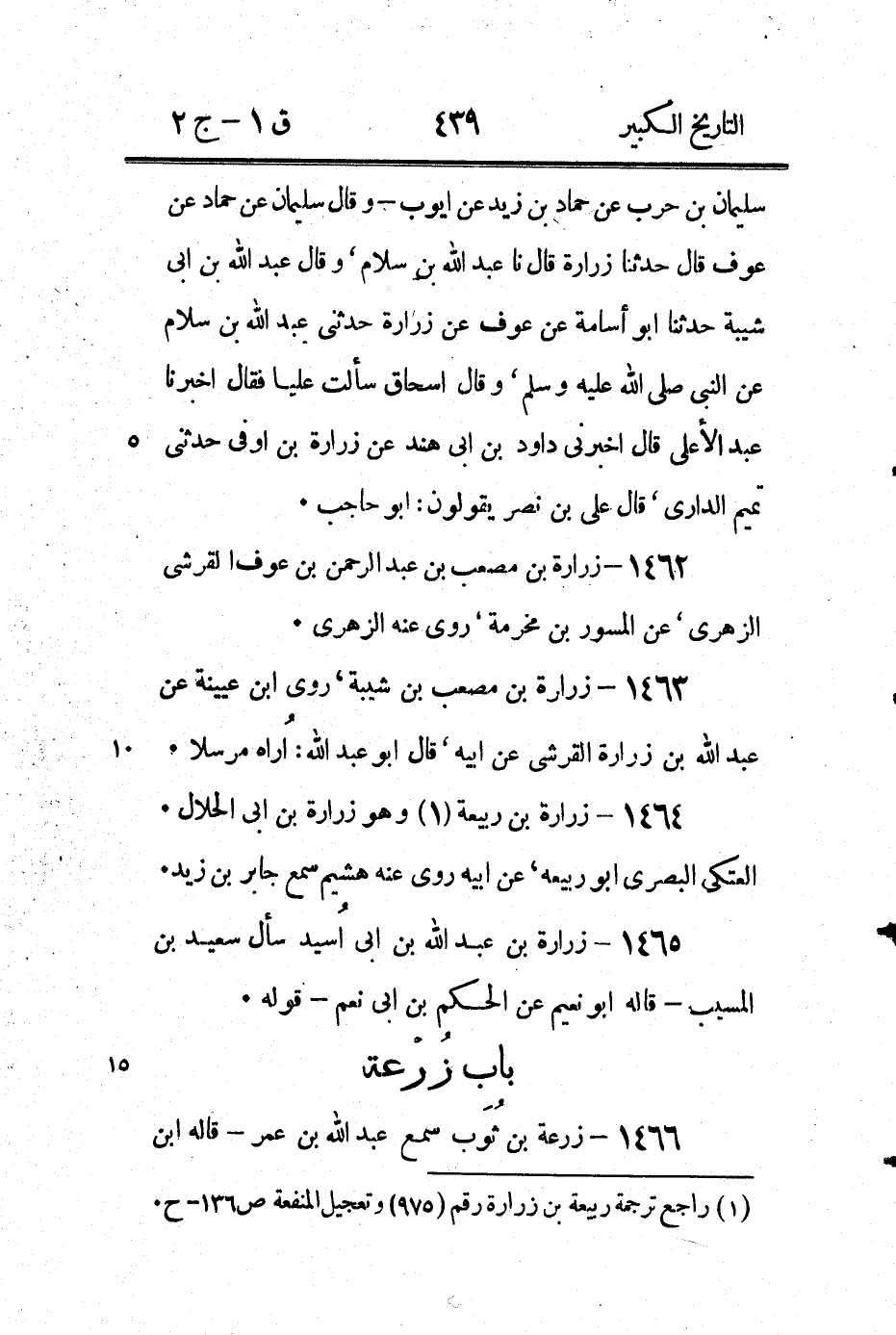 467 - زرعة بْن عَمْرو، قال شعيب بن حرب حدثنا خالد ابن يزيد الْقُرَشِيّ سَمِعَ زرعة بْن عَمْرو - وكَانَ عمرو أحد الاربعة الذين حملو عثمان (1) أصيب - عَنِ النَّبِيِّ صَلَّى اللَّهُ عَلَيْهِ وَسَلَّمَ، مرسل.