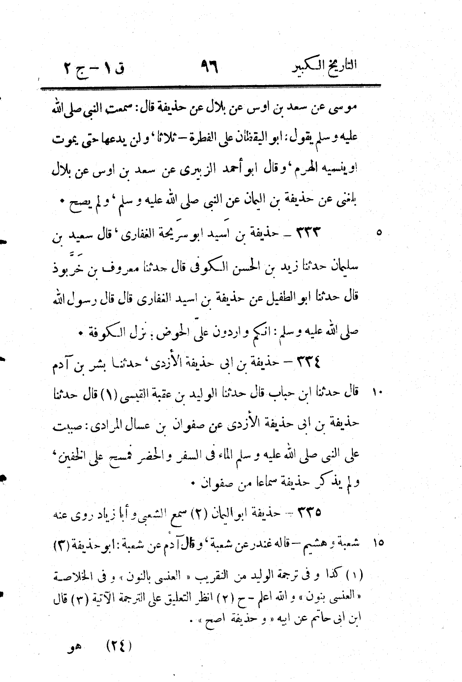 (1) ذكر ابن ابى حاتم هذا والذى قبله بنحو ما هنا اما ابن حبان فقال " حذيفة أبو اليمان الواسطي شيخ يروى المراسيل روى عنه محمد بن يوسف الفريابى " وفى النسخة تحريف ولم يذكر غيره في هذه الطبقة وظاهر هذا انه يرى هذا والذى قبله واحدا - ح (2) تقدم مثله في ترجمة جنادة (1 / 2 / 232) وعلقنا عليه هناك فراجعه (3) قال ابن ابى حاتم " حذيفة الازدي روى عنه جنادة بن ابى امية الازدي روى عنه أبو الخير مرثد بن عبد الله اليزنى سمعت ابى يقول ذلك " فبين يزيد وبين حذيفة واسطة هو أبو الخير مرثد ولكن الظاهر انه سقط من هذه الرواية وقد اوضحنا ذلك في ترجمة جنادة (1 / 2 / 232) فراجعها - ح (4) راجع ما علقناه على ترجمة بشير مولى معاوية (1 / 2 / 107) وانظر الترجمة الاتية - ح.