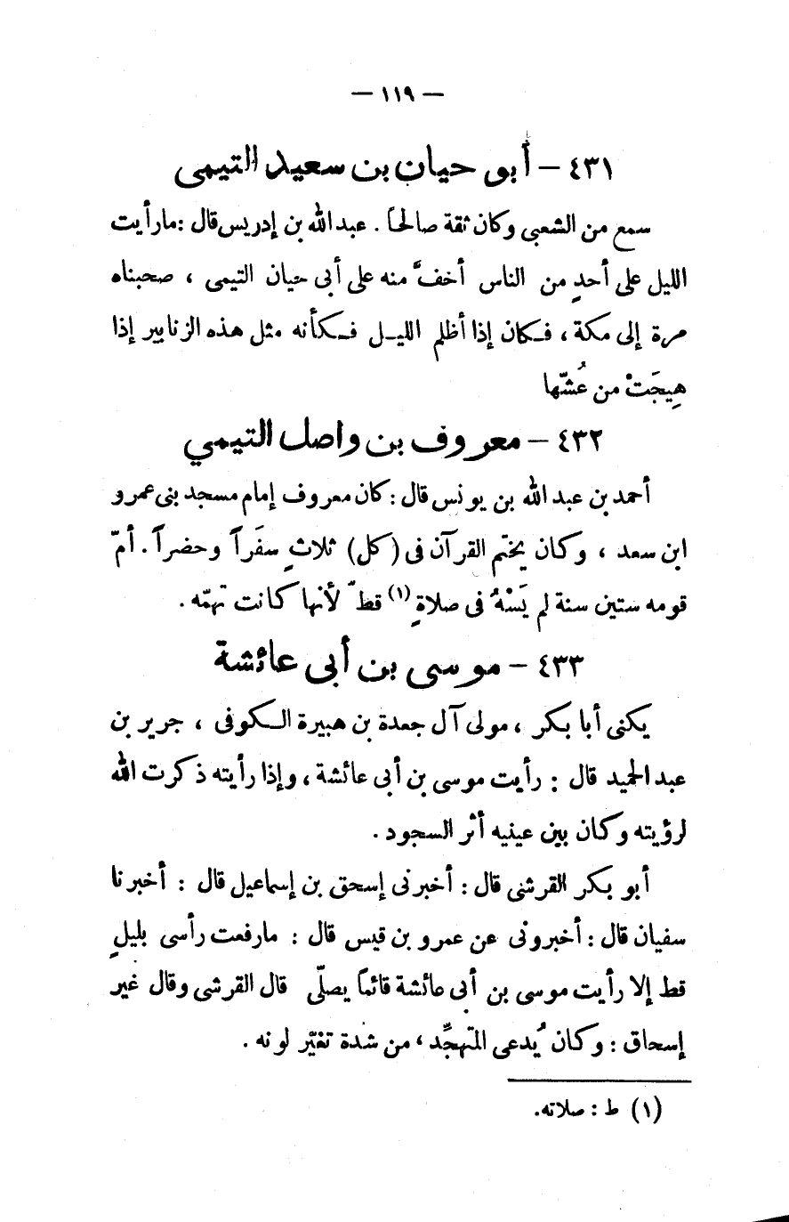 يكنى أبا بكر مولى آل جعدة بن هبيرة الكوفى جرير بن عبدالحميد قال رأيت موسى بن أبي عائشة وإذا رأيته ذكرت الله لرؤيته وكان بين عينيه أثر السجود