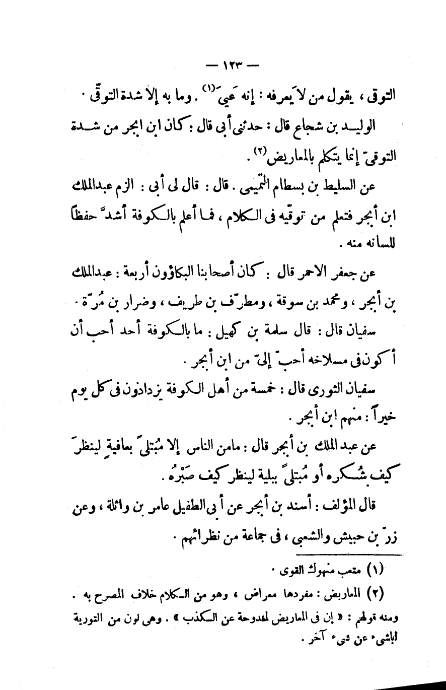 الوليد بن شجاع قال حدثني أبي قال كان ابن أبجر من شدة التوقى إنما يتكلم بالمعاريض