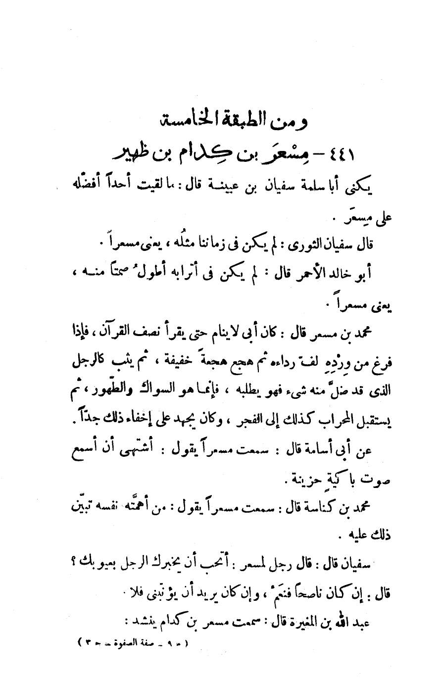 قال سفيان الثورى لم يكن في زماننا مثله يعني مسعرا