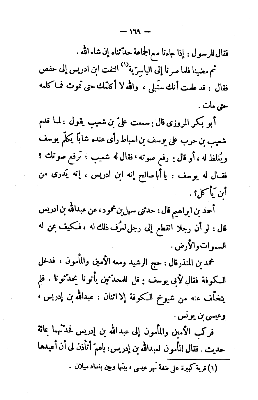 ثم مضينا فلما صرنا إلى الياسرية التفت ابن ادريس إلى حفص فقال قد علمت أنك ستبلى والله لا أكلمك حتى تموت فما كلمه حتى مات