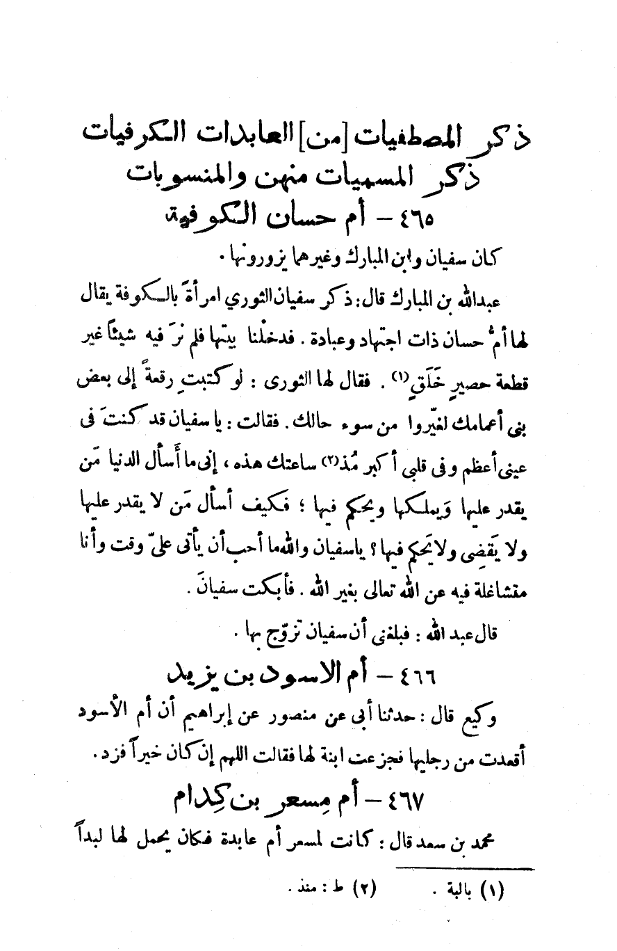 ذكر المصطفيات من العابدات الكوفيات ذكر المسميات منهن والمنسوبات