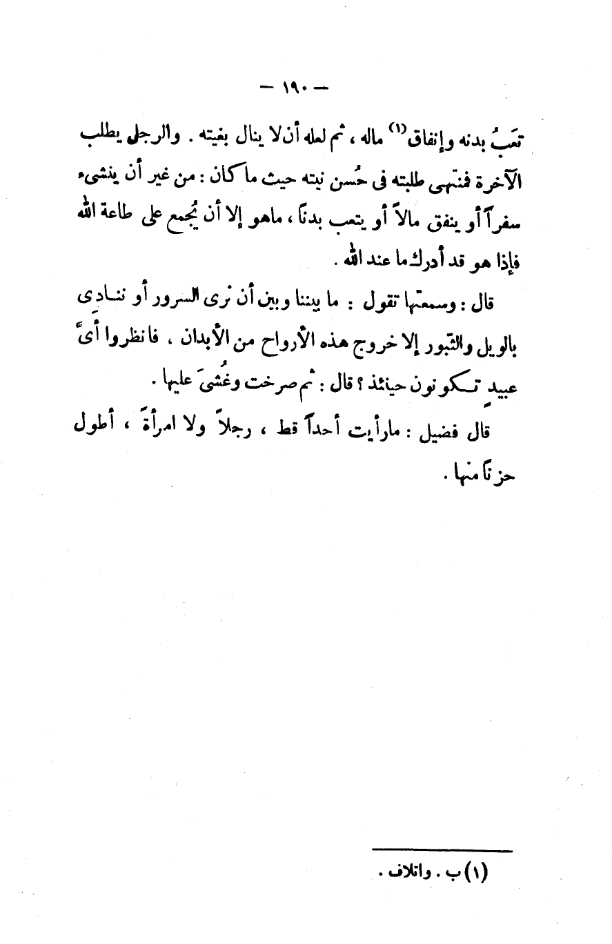 قال وسمعتها تقول ما بيننا وبين أن نرى السرور أو ننادى بالويل والثبور إلا خروج هذه الأرواح من الأبدان فانظروا أي عبيد تكونون حينئذ قال ثم صرخت وغشي عليها