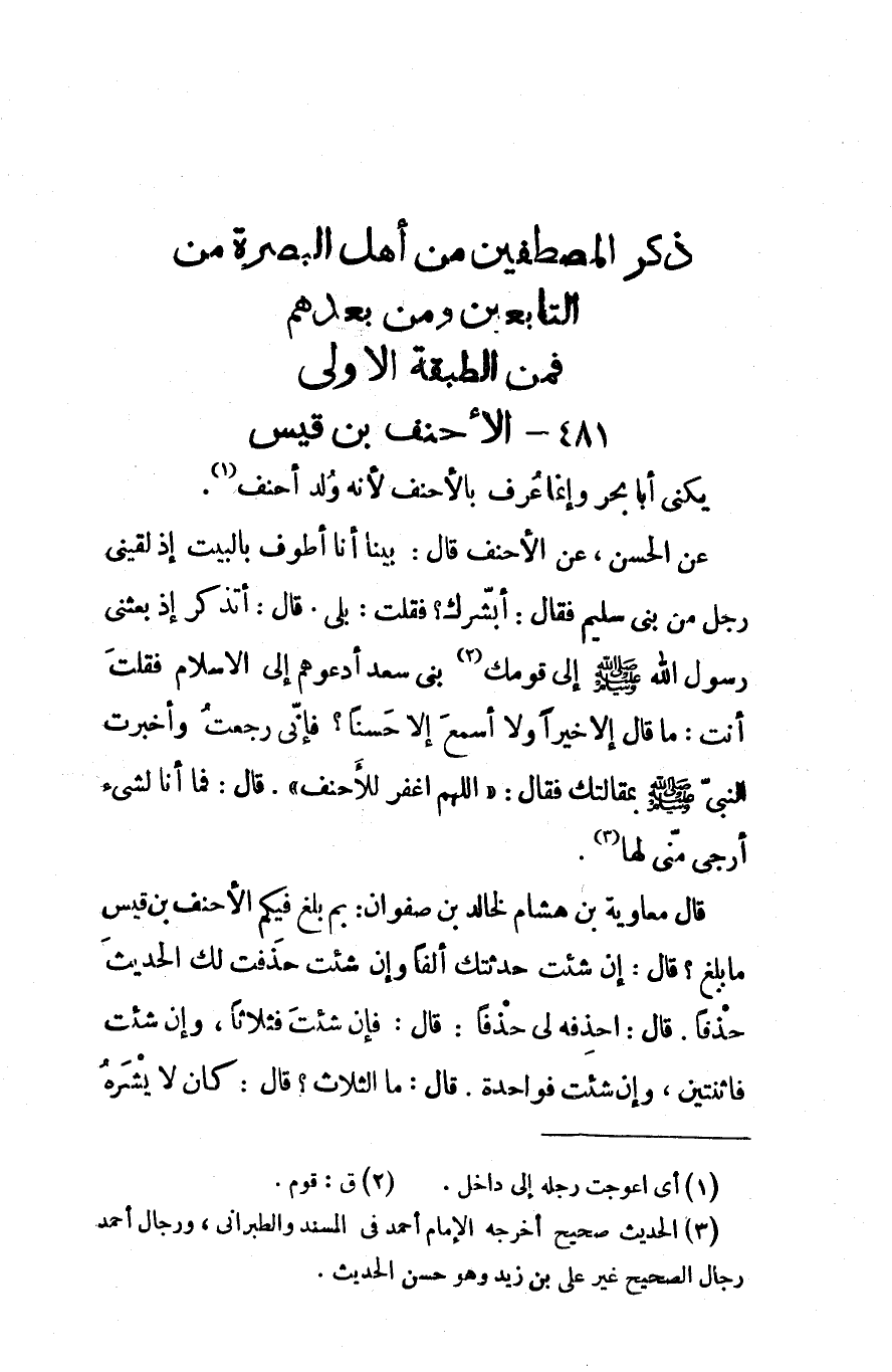 قال معاوية بن هشام لخالد بن صفوان بم بلغ فيكم الأحنف بن قيس ما بلغ قال إن شئت حدثتك ألفا وإن شئت حذفت لك الحديث حذفا قال احذفه لي حذفا قال فإن شئت فثلاثا وإن شئت فاثنتين وإن شئت فواحدة قال ما الثلاث قال كان لا يشره