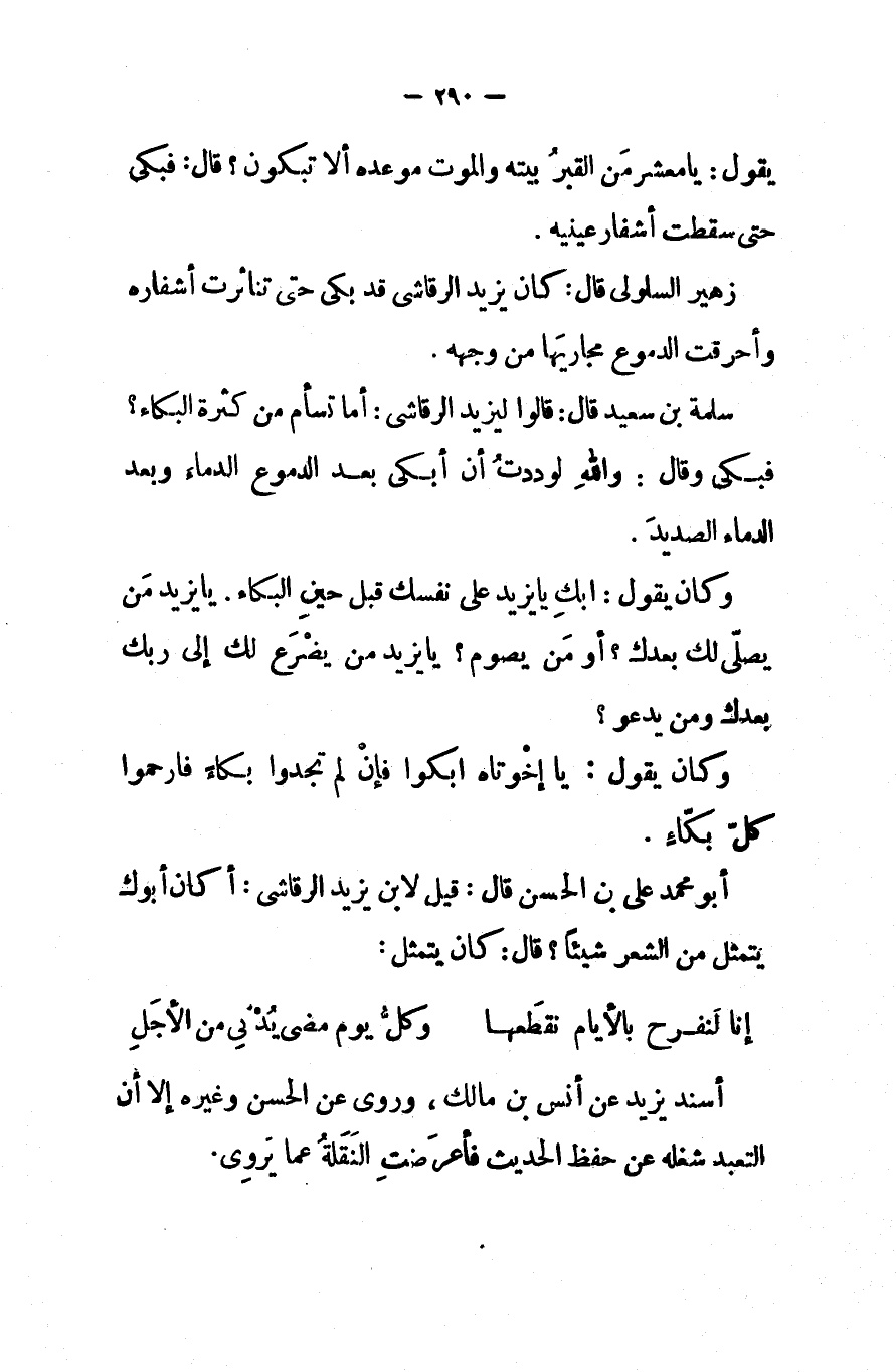 زهير السلولى قال كان يزيد الرقاشى قد بكى حتى تناثرت أشفاره وأحرقت الدموع مجاريها من وجهه