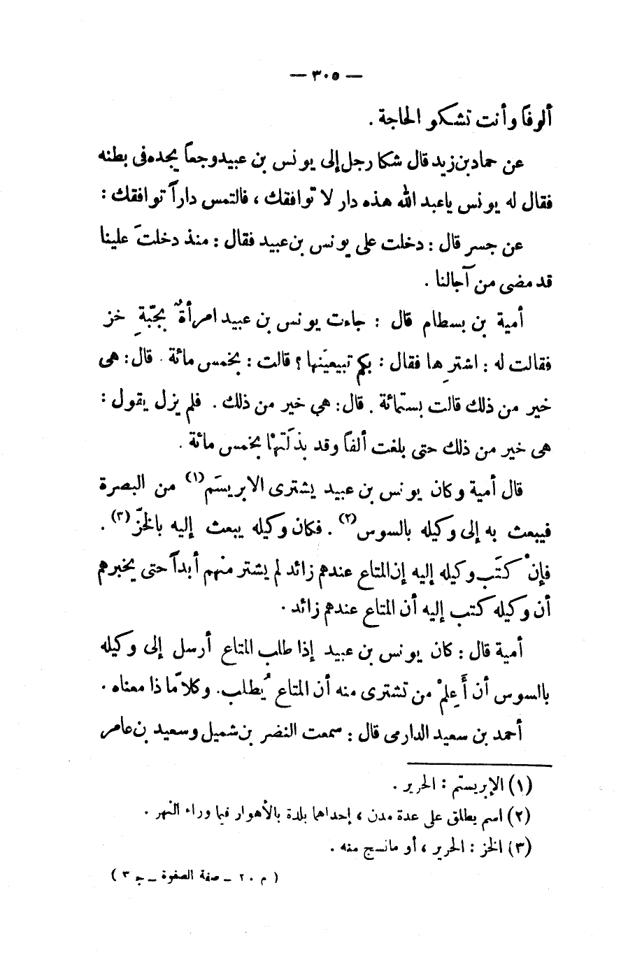 قال أمية وكان يونس بن عبيد يشترى الابريسم من البصرة فيبعث به إلى وكيله بالسوس فكان وكيله يبعث إليه بالخز فإن كتب وكيله إليه إن المتاع عندهم زائد لم يشتر منهم أبدا حتى يخبرهم أن وكيله كتب أليه أن المتاع عندهم زائد