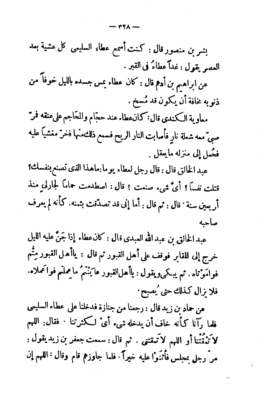 بشر بن منصور قال كنت أسمع عطاء السليمى كل عشيه بعد العصر يقول غدا عطاء فى القبر