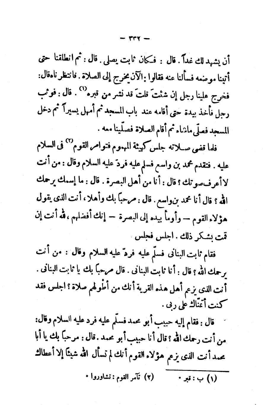 قال فقام إليه حبيب أبو محمد فسلم عليه فرد عليه السلام وقال من أنت رحمك الله قال أنا حبيب أبو محمد قال مرحبا بك يا أبا محمد أنت الذى يزعم هؤلاء القوم أنك لم تسأل الله شيئا إلا أعطاك