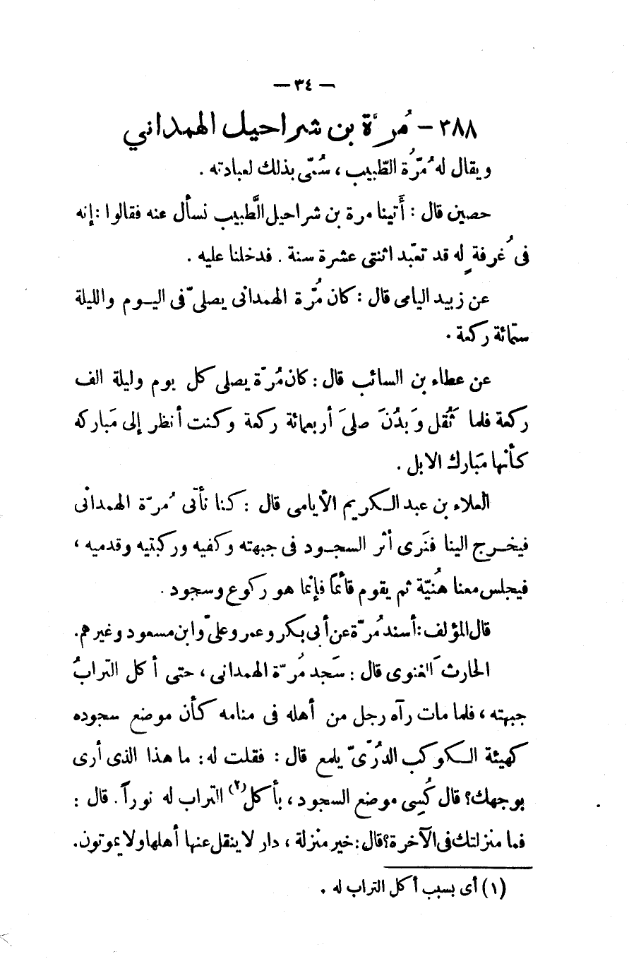 عن زبيد اليامي قال كان مرة الهمداني يصلي في اليوم والليلة ستمائة ركعة