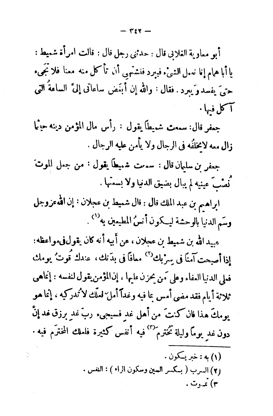 جعفر بن سليمان قال سمعت شميطا يقول من جعل الموت نصب عينيه لم يبال بضيق الدنيا ولابسعتها