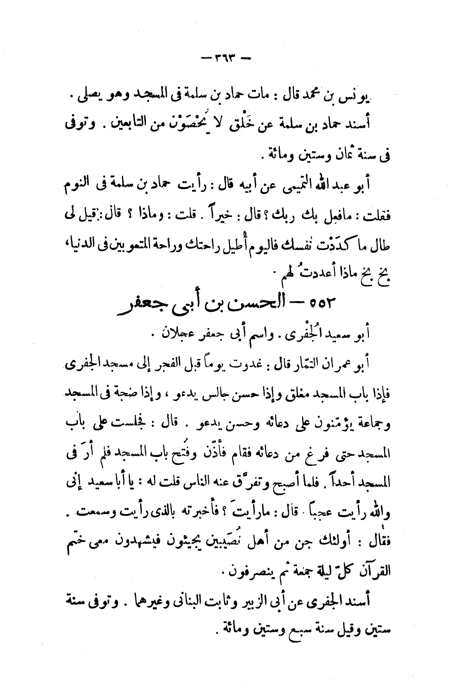 يونس بن محمد قال مات حماد بن سلمة فى المسجد وهو يصلى
