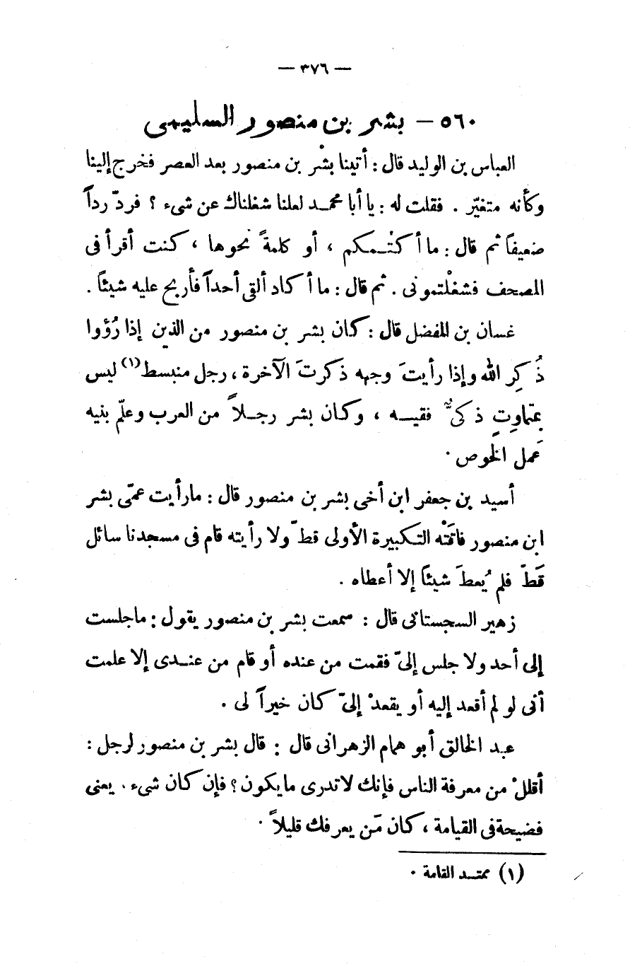 زهير السجستانى قال سمعت بشر بن منصور يقول ما جلست إلى أحد ولا جلس إلى فقمت من عنده أو قام من عندىإلا علمت أنى لو لم أقعد إليه أو يقعد إلي كان خيرا لى