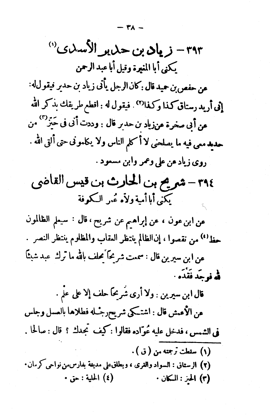 393 - زياد بن حدير الأسدى يكنى أبا المغيرة وقيل أبا عبد الرحمن