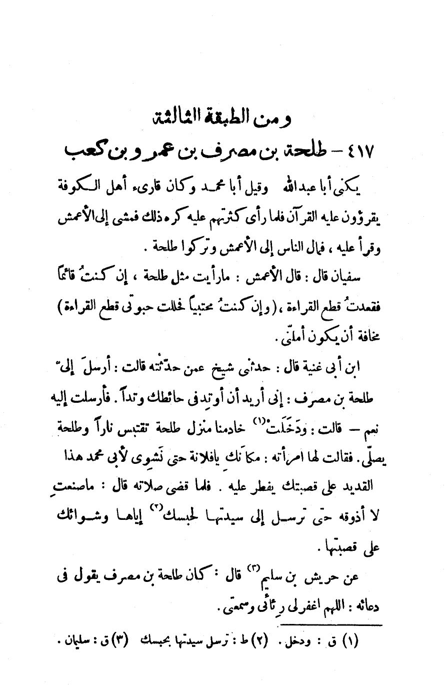 417 - طلحة بن مصرف بن عمرو بن كعب