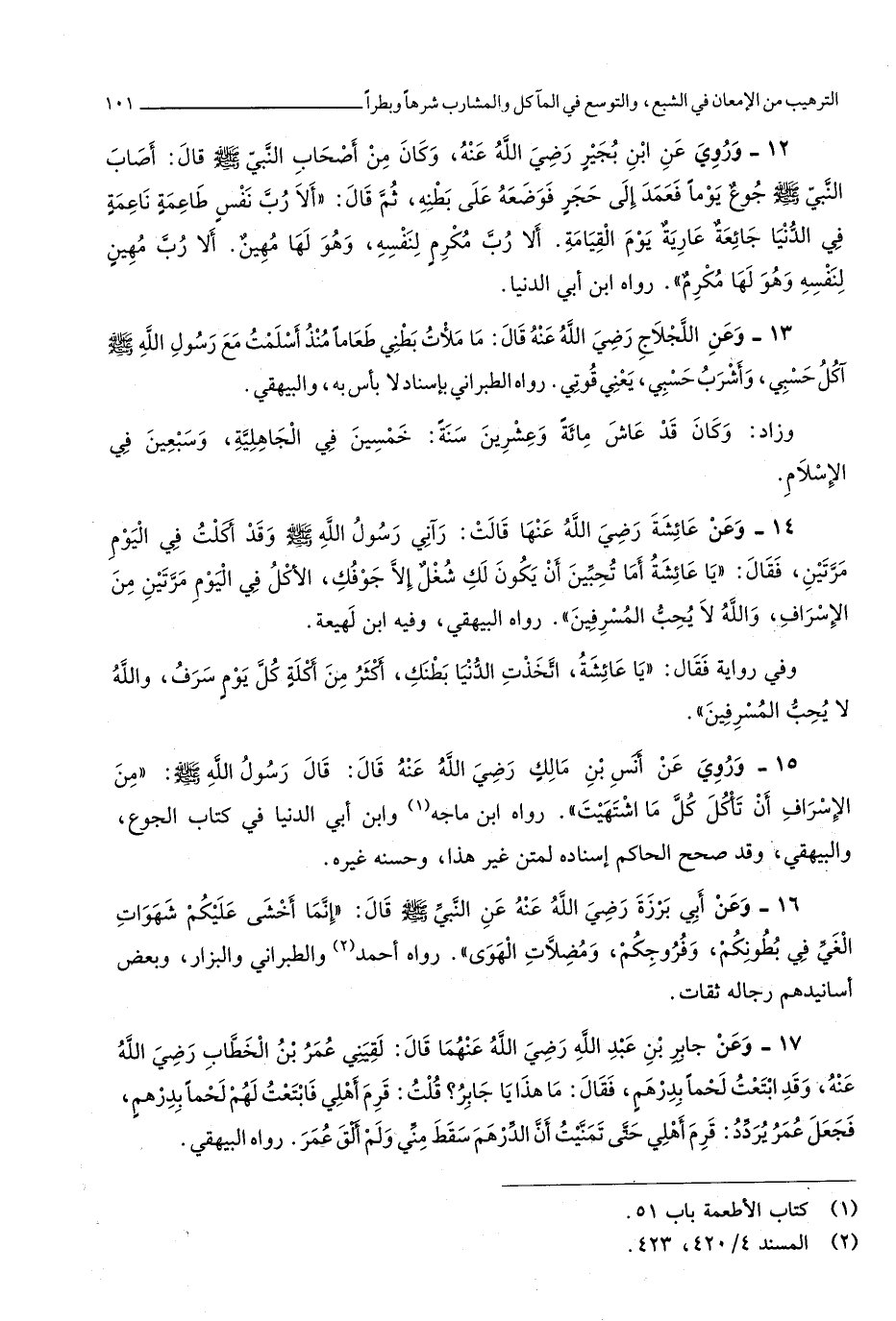 وَفِي رِوَايَة فَقَالَ يَا عَائِشَة اتَّخذت الدُّنْيَا بَطْنك أَكثر من أَكلَة كل يَوْم سرف وَالله لَا يحب المسرفين