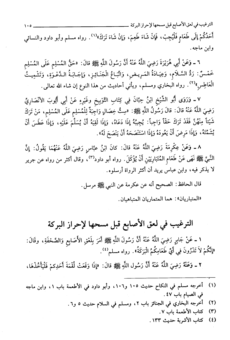 2 - التَّرْغِيب فِي لعق الْأَصَابِع قبل مسحها لإحراز الْبركَة