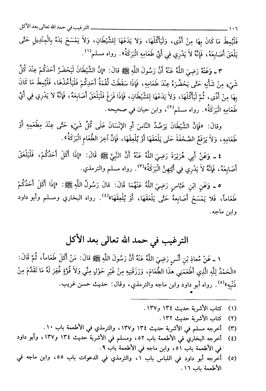 3 - التَّرْغِيب فِي حمد الله تَعَالَى بعد الْأكل
