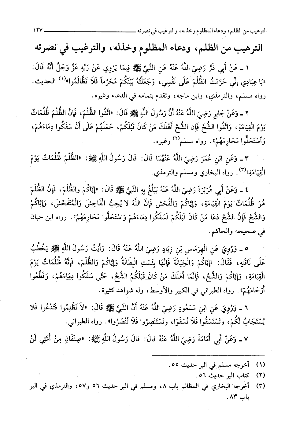 التَّرْهِيب من الظُّلم وَدُعَاء الْمَظْلُوم وخذله وَالتَّرْغِيب فِي نصرته