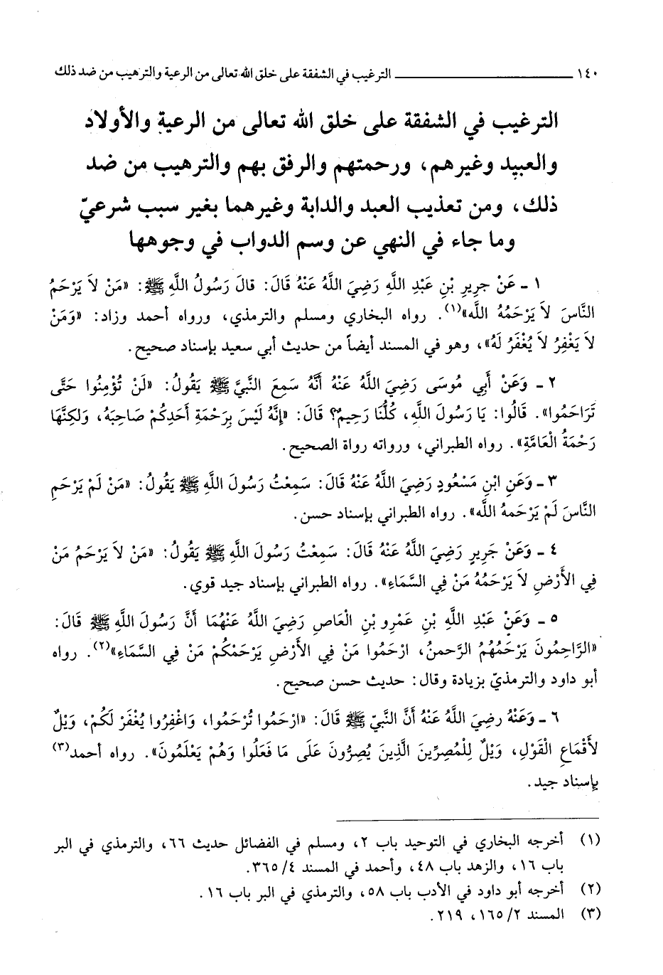 10 - التَّرْغِيب فِي الشَّفَقَة على خلق الله تَعَالَى من الرّعية وَالْأَوْلَاد وَالْعَبِيد وَغَيرهم ورحمتهم والرفق بهم والترهيب من ضد ذَلِك وَمن تَعْذِيب العَبْد وَالدَّابَّة وَغَيرهمَا بِغَيْر سَبَب شَرْعِي وَمَا جَاءَ فِي النَّهْي عَن وسم الدَّوَابّ فِي وجوهها
