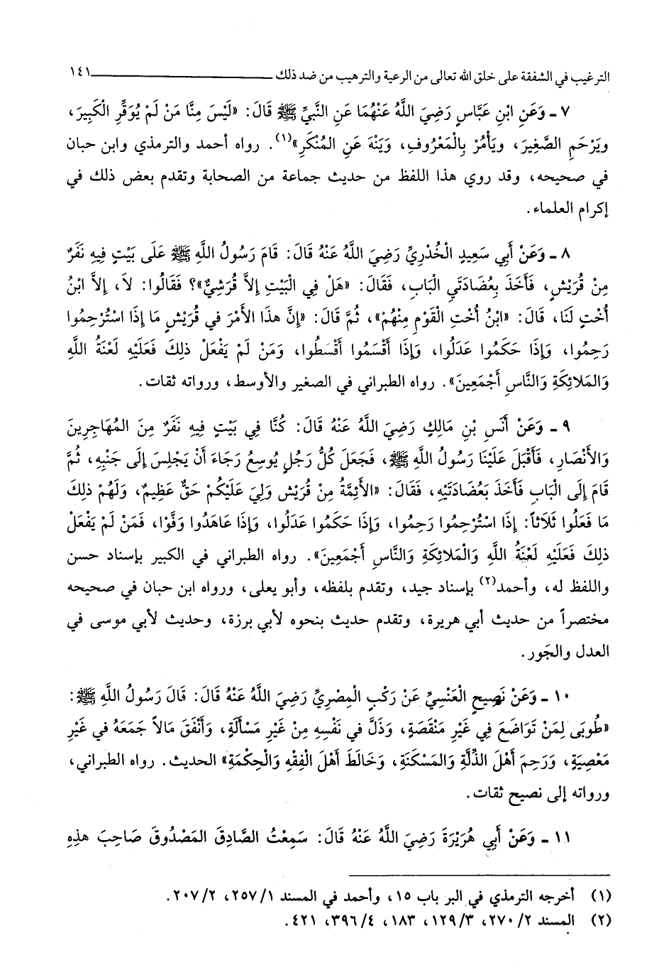 رَوَاهُ الطَّبَرَانِيّ فِي الْكَبِير بِإِسْنَاد حسن وَاللَّفْظ لَهُ وَأحمد بِإِسْنَاد جيد وَتقدم بِلَفْظِهِ وَأَبُو يعلى وَرَوَاهُ ابْن حبَان فِي صَحِيحه مُخْتَصرا من حَدِيث أبي هُرَيْرَة وَتقدم حَدِيث بِنَحْوِهِ لأبي بَرزَة وَحَدِيث لأبي مُوسَى فِي الْعدْل والجور