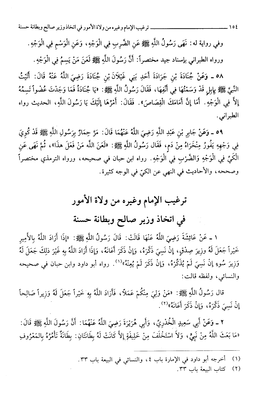 رَوَاهُ أَبُو دَاوُد وَابْن حبَان فِي صَحِيحه وَالنَّسَائِيّ وَلَفظه قَالَت قَالَ رَسُول الله صلى الله عَلَيْهِ وَسلم من ولي مِنْكُم عملا فَأَرَادَ الله بِهِ خيرا جعل لَهُ وزيرا صَالحا إِن نسي ذكره وَإِن ذكر أَعَانَهُ