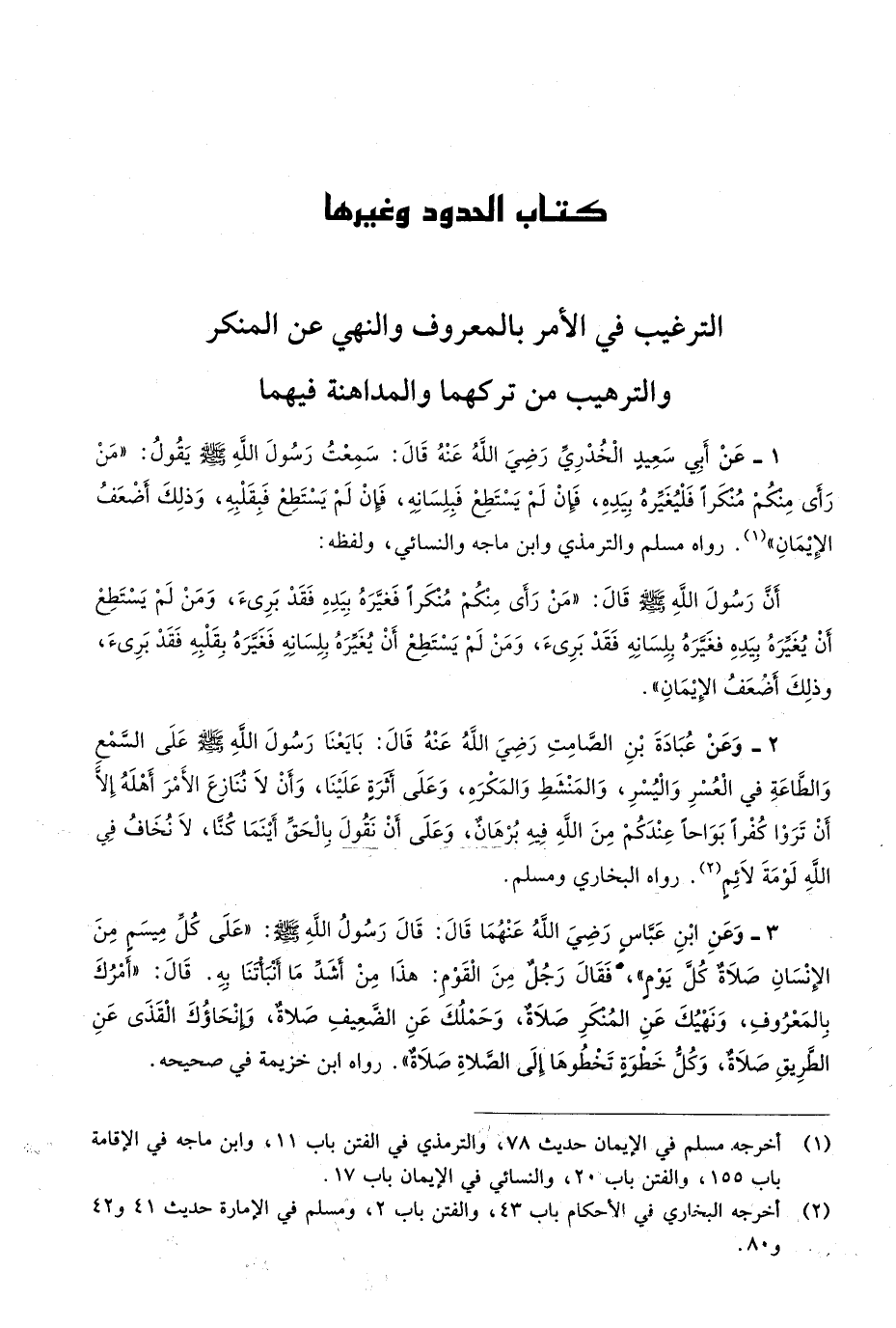 كتاب الْحُدُود وَغَيرهَا التَّرْغِيب فِي الْأَمر بِالْمَعْرُوفِ وَالنَّهْي عَن الْمُنكر