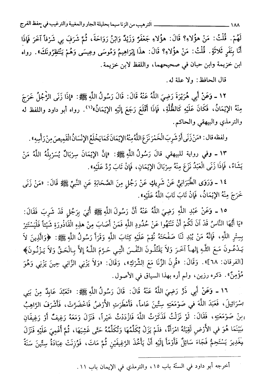 وَقَالَ قرن الزِّنَا مَعَ الشّرك وَقَالَ وَلَا يَزْنِي الزَّانِي حِين يَزْنِي وَهُوَ مُؤمن