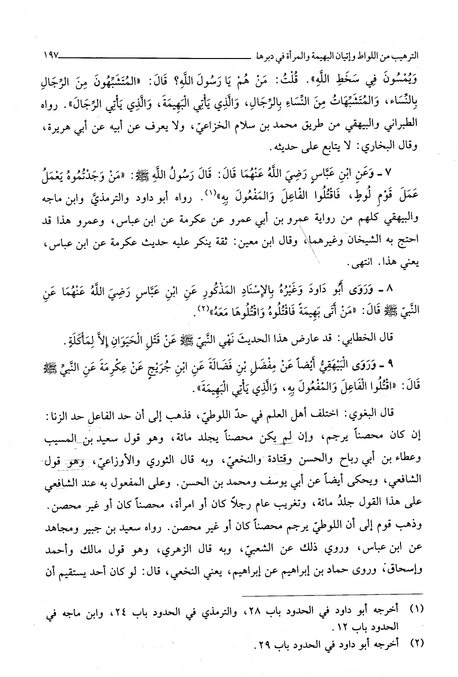 قلت من هم يَا رَسُول الله قَالَ المتشبهون من الرِّجَال بِالنسَاء والمتشبهات من النِّسَاء بِالرِّجَالِ وَالَّذِي يَأْتِي الْبَهِيمَة وَالَّذِي يَأْتِي الرِّجَال