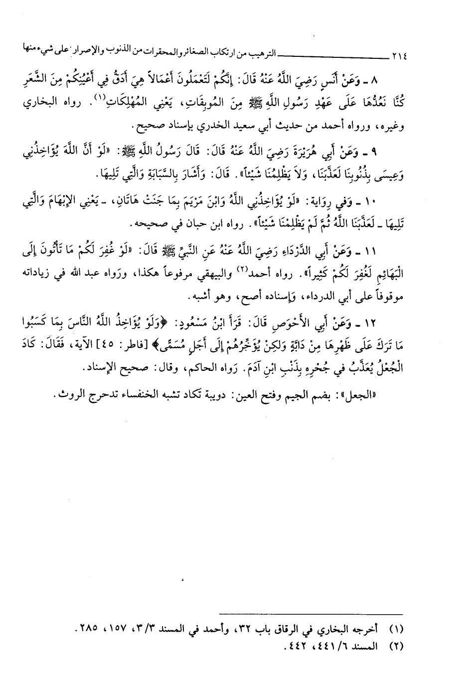 3739 - وَعَن أبي الْأَحْوَص قَالَ قَرَأَ ابْن مَسْعُود وَلَو يُؤَاخذ الله النَّاس بِمَا كسبوا مَا ترك على ظهرهَا من دَابَّة وَلَكِن يؤخرهم إِلَى أجل مُسَمّى فاطر 54 الْآيَة فَقَالَ كَاد الْجعل يعذب فِي جُحْره بذنب ابْن آدم