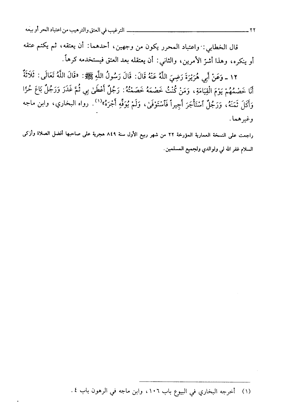 راجعت على النُّسْخَة العمارية المؤرخة 22 من شهر ربيع الأول سنة 948 هجرية على صَاحبهَا أفضل الصَّلَاة وأزكى السَّلَام غفر الله لي ولوالدي وَلِجَمِيعِ الْمُسلمين