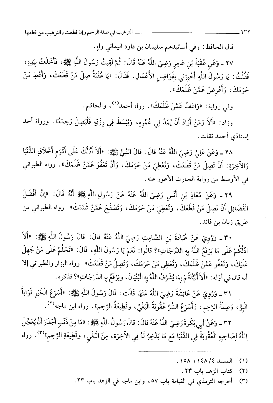 3816 - وَعَن عقبَة بن عَامر رَضِي الله عَنهُ قَالَ ثمَّ لقِيت رَسُول الله صلى الله عَلَيْهِ وَسلم فَأخذت بِيَدِهِ فَقلت يَا رَسُول الله أَخْبرنِي بفواضل الْأَعْمَال فَقَالَ يَا عقبَة صل من قَطعك وَأعْطِ من حَرمك وَأعْرض عَمَّن ظلمك
