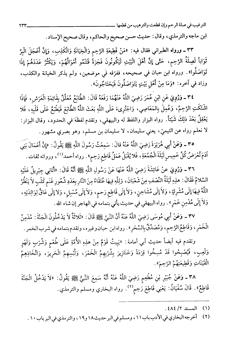 3826 - وَعَن أبي مُوسَى رَضِي الله عَنهُ أَن النَّبِي صلى الله عَلَيْهِ وَسلم قَالَ ثَلَاثَة لَا يدْخلُونَ الْجنَّة مدمن الْخمر وقاطع الرَّحِم ومصدق بِالسحرِ