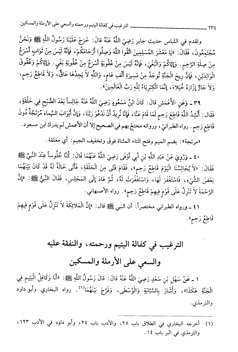 3831 - عَن سهل بن سعد رَضِي الله عَنهُ قَالَ قَالَ رَسُول الله صلى الله عَلَيْهِ وَسلم أَنا وكافل الْيَتِيم فِي الْجنَّة هَكَذَا وَأَشَارَ بالسبابة وَالْوُسْطَى وَفرج بَينهمَا