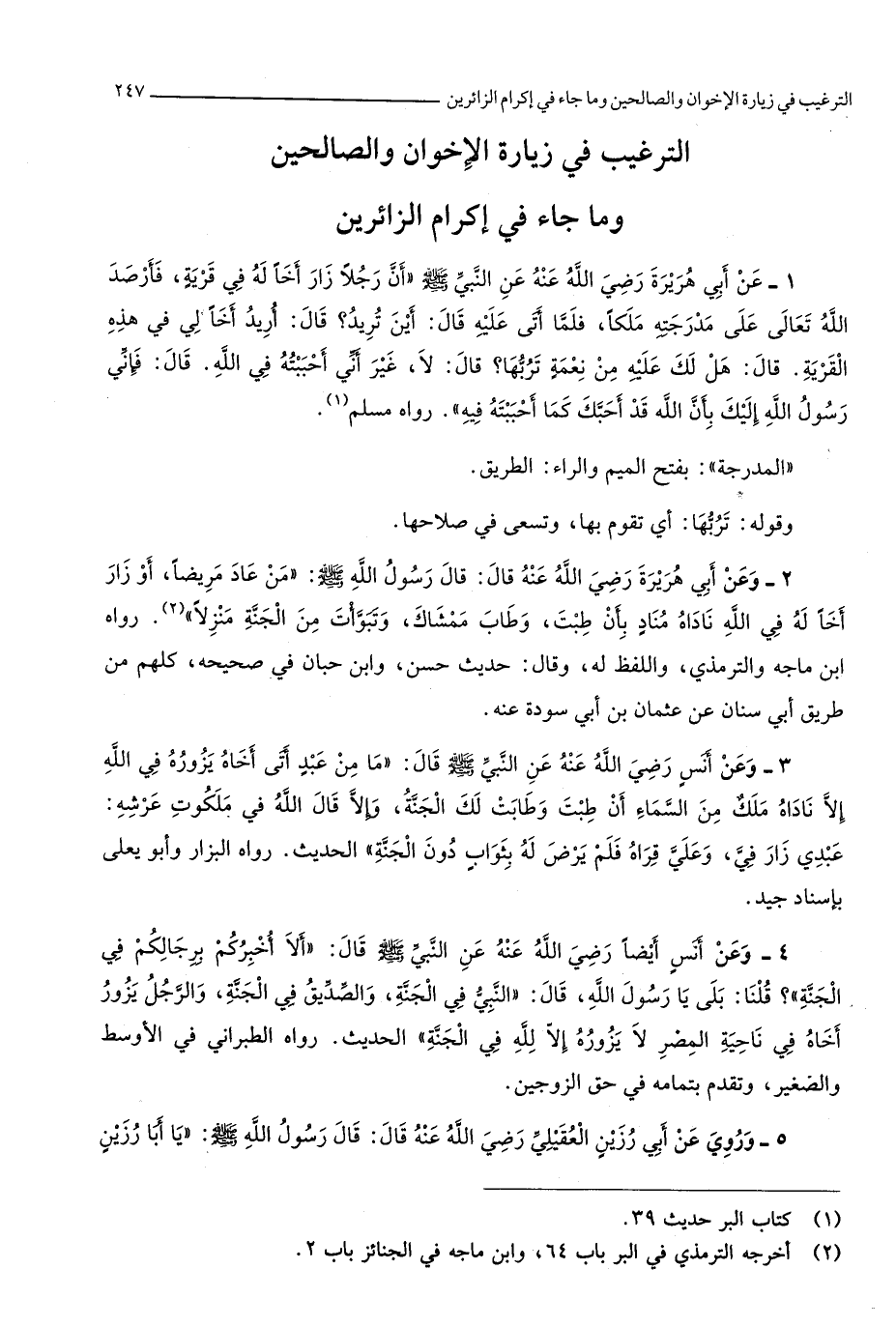 3892 - وَعَن أنس رَضِي الله عَنهُ عَن النَّبِي صلى الله عَلَيْهِ وَسلم قَالَ مَا من عبد أَتَى أَخَاهُ يزوره فِي الله إِلَّا ناداه ملك من السَّمَاء أَن طبت وَطَابَتْ لَك الْجنَّة وَإِلَّا قَالَ الله فِي ملكوت عَرْشه عَبدِي زار فِي وَعلي قراه فَلم يرض لَهُ بِثَوَاب دون الْجنَّة الحَدِيث