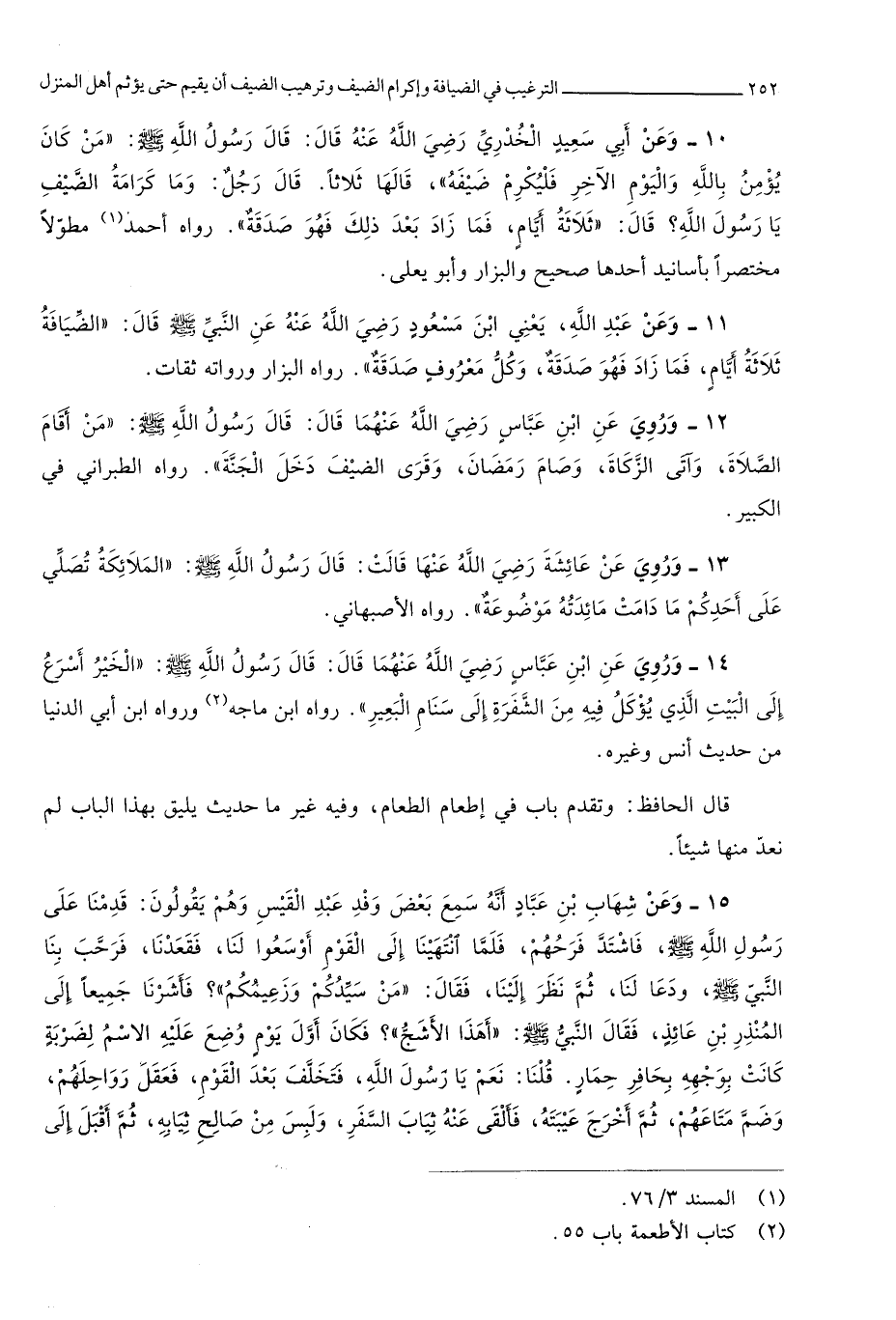 3913 - وَعَن عبد الله يَعْنِي ابْن مَسْعُود رَضِي الله عَنهُ عَن النَّبِي صلى الله عَلَيْهِ وَسلم قَالَ الضِّيَافَة ثَلَاثَة أَيَّام فَمَا زَاد فَهُوَ صَدَقَة وكل مَعْرُوف صَدَقَة