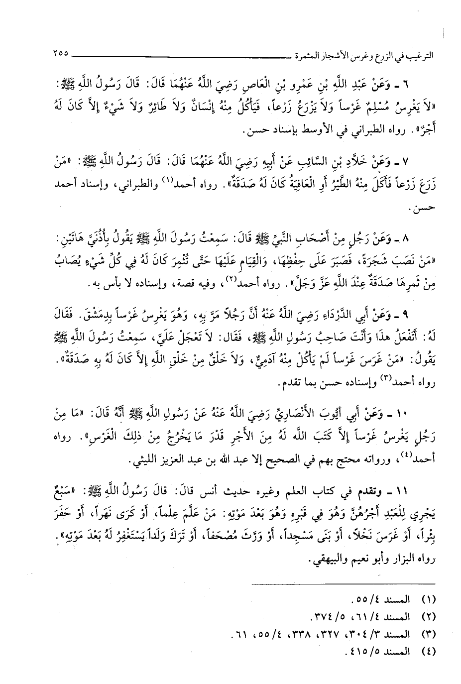 فَقَالَ لَهُ أتفعل هَذَا وَأَنت صَاحب رَسُول الله صلى الله عَلَيْهِ وَسلم فَقَالَ لَا تعجل عَليّ سَمِعت رَسُول الله صلى الله عَلَيْهِ وَسلم يَقُول من غرس غرسا لم يَأْكُل مِنْهُ آدَمِيّ وَلَا خلق من خلق الله إِلَّا كَانَ لَهُ بِهِ صَدَقَة