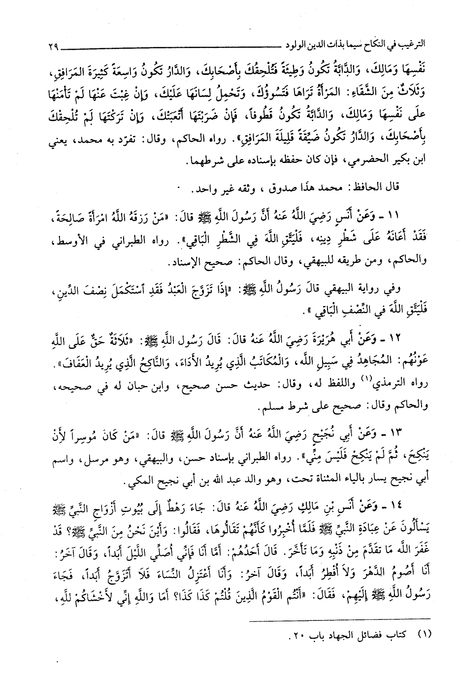 وَفِي رِوَايَة الْبَيْهَقِيّ قَالَ رَسُول الله صلى الله عَلَيْهِ وَسلم إِذا تزوج العَبْد فقد اسْتكْمل نصف الدّين فليتق الله فِي النّصْف الْبَاقِي