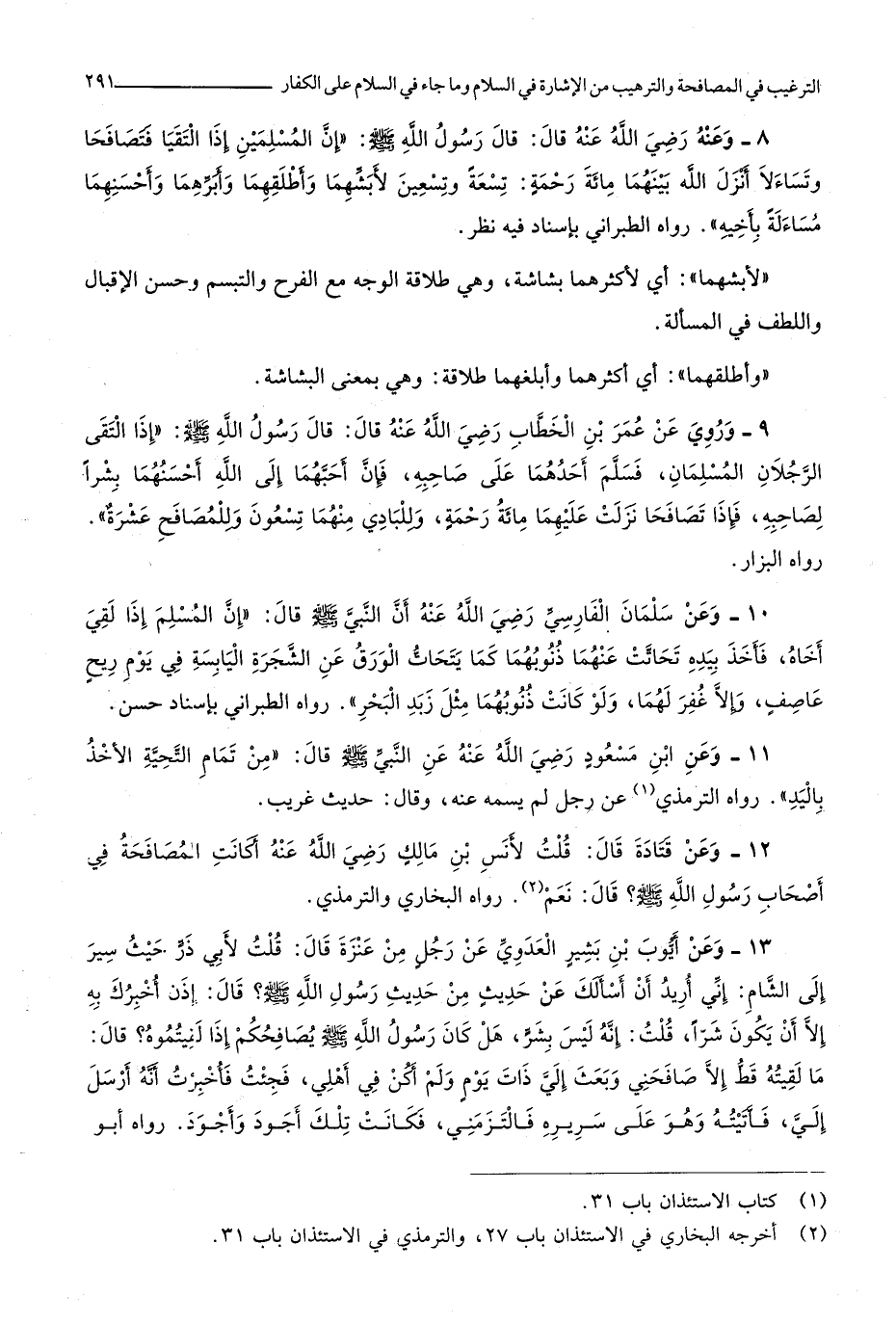 4120 - وَعَن ابْن مَسْعُود رَضِي الله عَنهُ عَن النَّبِي صلى الله عَلَيْهِ وَسلم قَالَ من تَمام التَّحِيَّة الْأَخْذ بِالْيَدِ