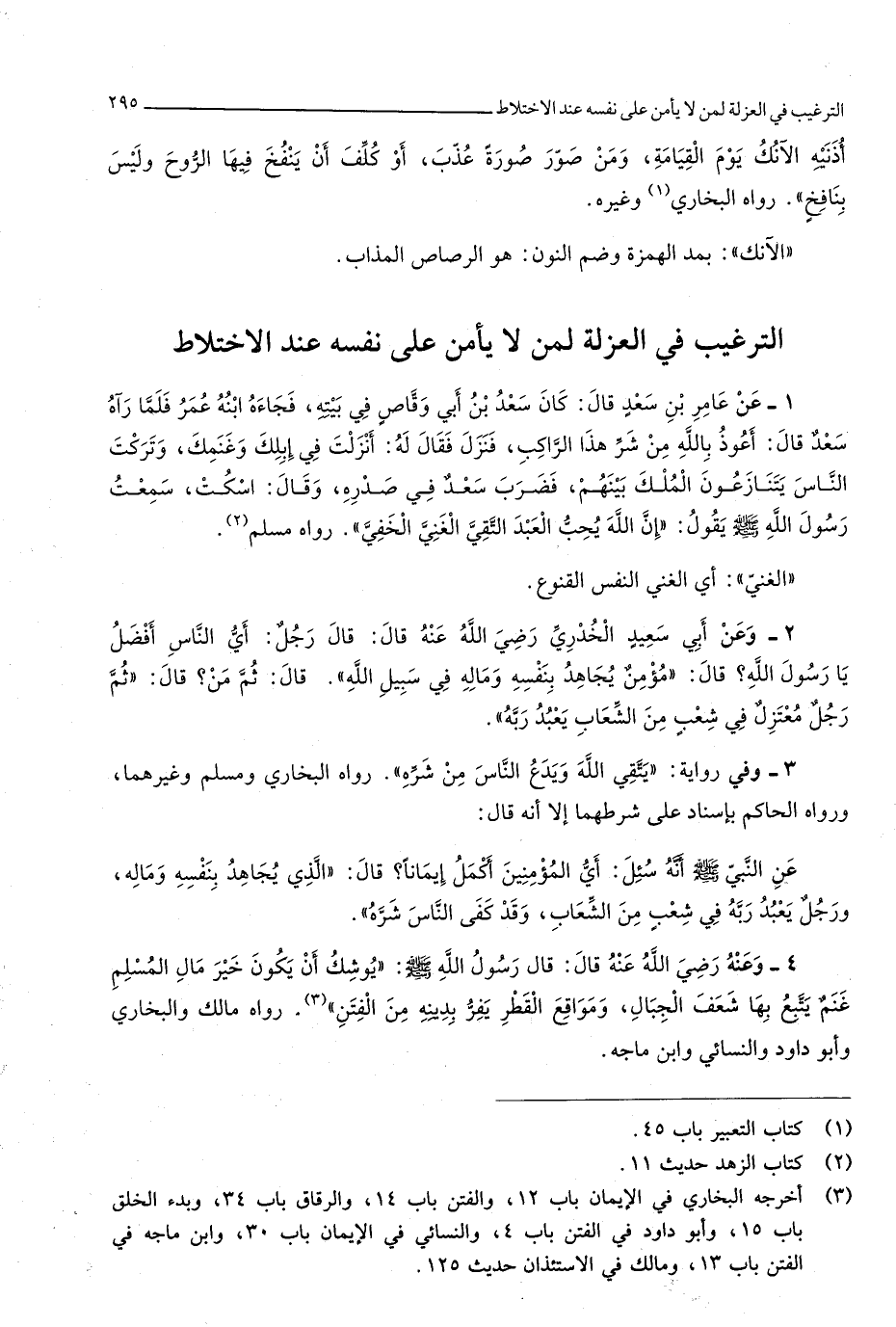 التَّرْغِيب فِي الْعُزْلَة لمن لَا يَأْمَن على نَفسه عِنْد الِاخْتِلَاط