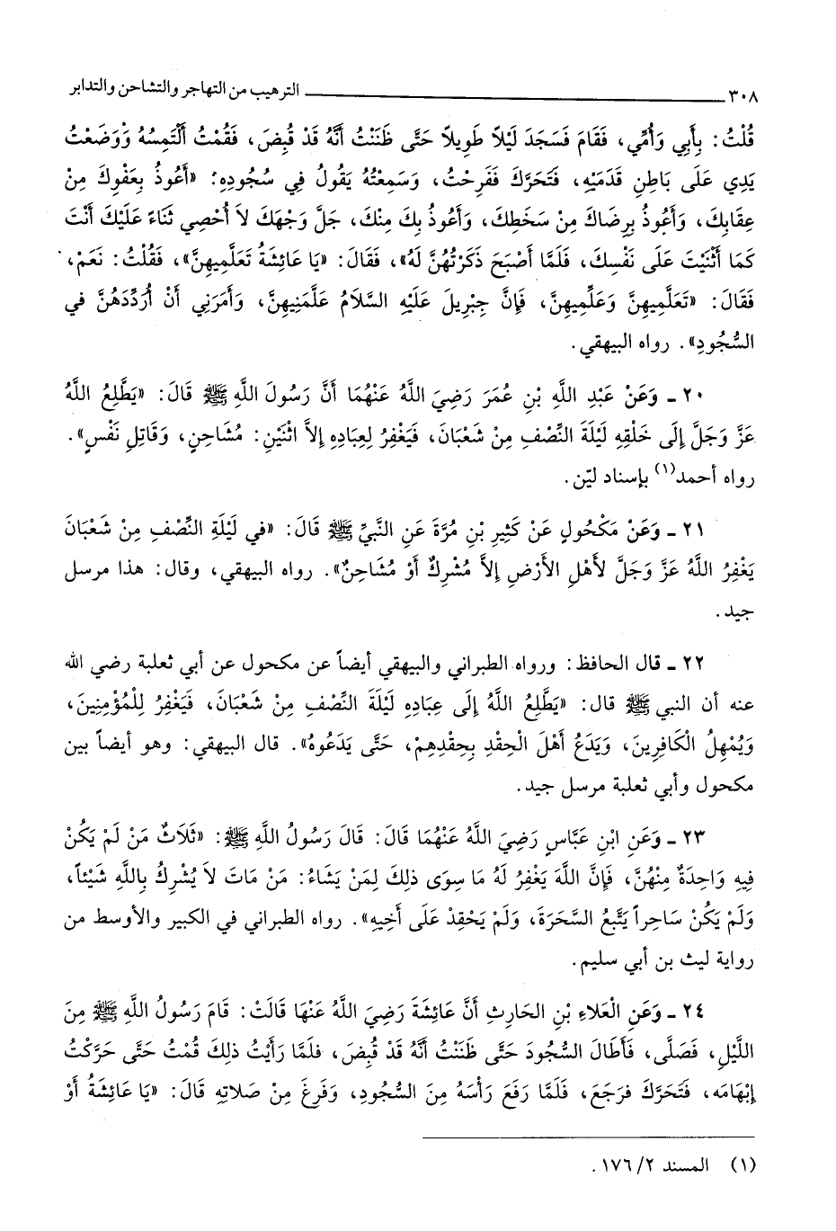 4192 - وَعَن عبد الله بن عمر رَضِي الله عَنْهُمَا أَن رَسُول الله صلى الله عَلَيْهِ وَسلم قَالَ يطلع الله عز وَجل إِلَى خلقه لَيْلَة النّصْف من شعْبَان فَيغْفر لِعِبَادِهِ إِلَّا اثْنَيْنِ مُشَاحِن وَقَاتل نفس
