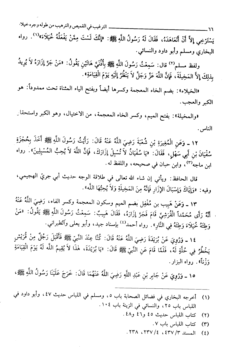 قَالَ الْحَافِظ وَيَأْتِي إِن شَاءَ الله تَعَالَى فِي طلاقة الْوَجْه حَدِيث أبي جري الهُجَيْمِي وَفِيه وَإِيَّاك وإسبال الْإِزَار فَإِنَّهُ من المخيلة وَلَا يُحِبهَا الله