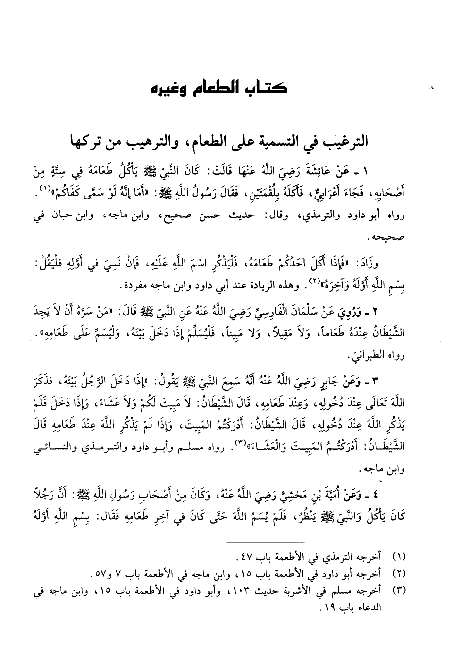 كتاب الطَّعَام وَغَيره التَّرْغِيب فِي التَّسْمِيَة على الطَّعَام والترهيب من تَركهَا