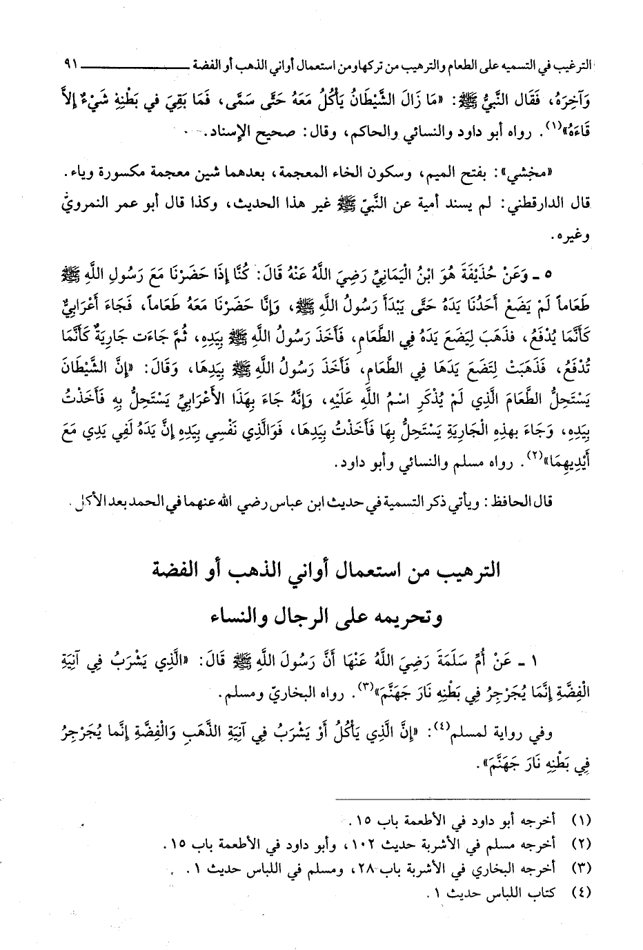 2 - التَّرْهِيب من اسْتِعْمَال أواني الذَّهَب أَو الْفضة وتحريمه على الرِّجَال وَالنِّسَاء
