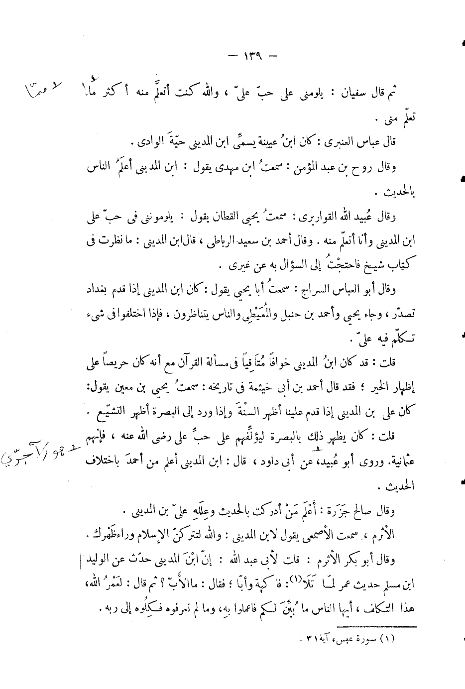 الاثرم، سمعت الأصمعي يقول لابن المديني: والله لتتركن الإسلام وراء ظهرك.