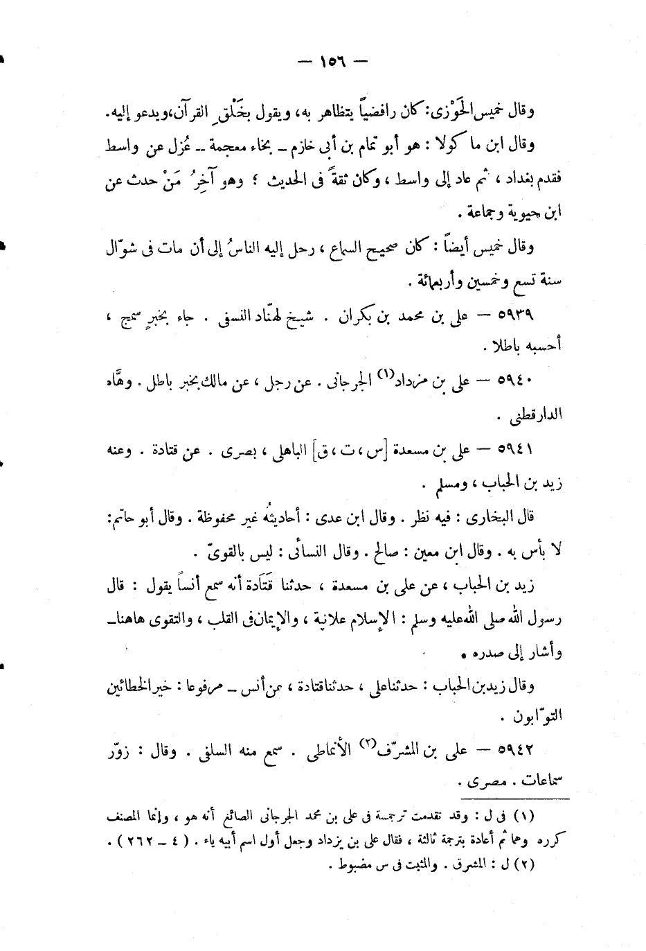 (1) في ل: وقد تقدمت ترجمة في على بن محمد الجرجاني الصائغ أنه هو، وإنما المصنف كرره وهما ثم أعاده بترجمة ثالثة، فقال على بن يزداد وجعل أول اسم أبيه ياء.