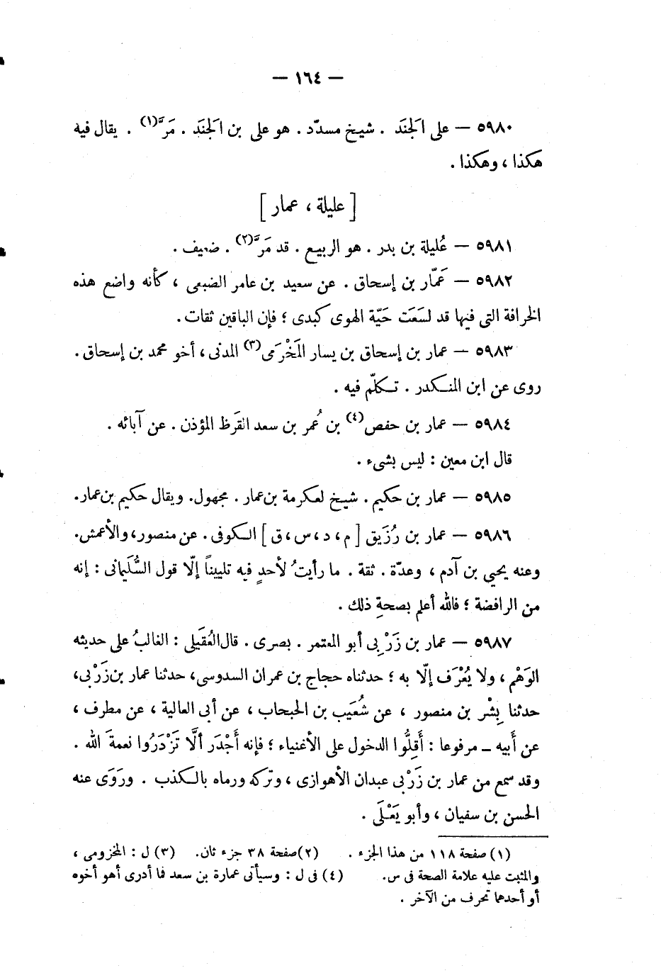 قال العقيلي: الغالب على حديثه الوهم، ولا يعرف إلا به، حدثناه حجاج بن عمران السدوسي، حدثنا عمار بن زربى، حدثنا بشر بن منصور، عن شعيب بن الحبحاب، عن أبي العالية، عن مطرف، عن أبيه - مرفوعاً: أقلوا الدخول على الاغنياء، فإنه أجدر ألا تزدروا نعمة الله.